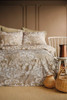 Lenjeria de pat cu motive orientale și culori scandinave îmbină designul unic cu bumbacul ranforce de calitate. Detaliile florale vibrante stârnesc curiozitatea și adaugă un strop de mister și eleganță, transformând somnul tău într-o experiență confortabilă și stilată.
