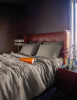 Pliurile curg ca un val domol, netezind ziua într-o liniște de seară; lucirile discrete mângâie privirea și adâncesc tonurile minerale, ca o piatră caldă păstrată în palmă. Suprafața uniformă devine scenă pentru repaus, cu umbre îmblânzite și contururi curate ce ordonează încăperea. Fiecare atingere promite răcoare catifelată și un somn care începe simplu: eleganță fără efort, rafinament în șoaptă.